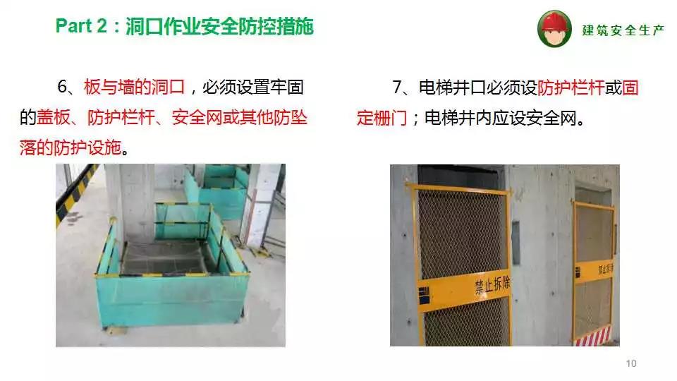 8、嚴(yán)格執(zhí)行高處作業(yè)五個(gè)必有“有邊必有欄,有洞必有蓋,有欄無蓋必有網(wǎng),有電必有防護(hù)措施,電梯必有門”。